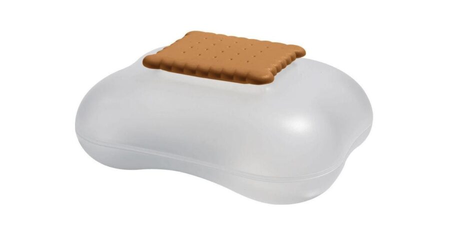 Mary Biscuit, disegnata da Stefano Giovannoni, è una scatola per dolci in cui la forma riflette la funzione: un grande biscotto il cui potere evocativo non si ferma alle forme morbide e arrotondate, ma coinvolge il tatto (il materiale traslucido è piacevole al tocco) e anche l’olfatto: il coperchio profuma infatti del delicato aroma dei biscotti al burro.