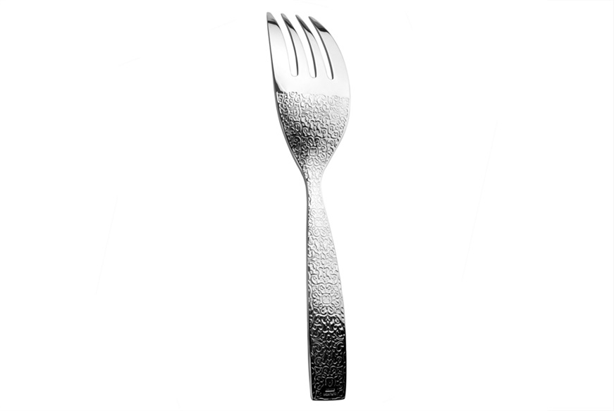 Forchetta da servizio in acciaio inossidabile 18/10 con decoro a rilievo.