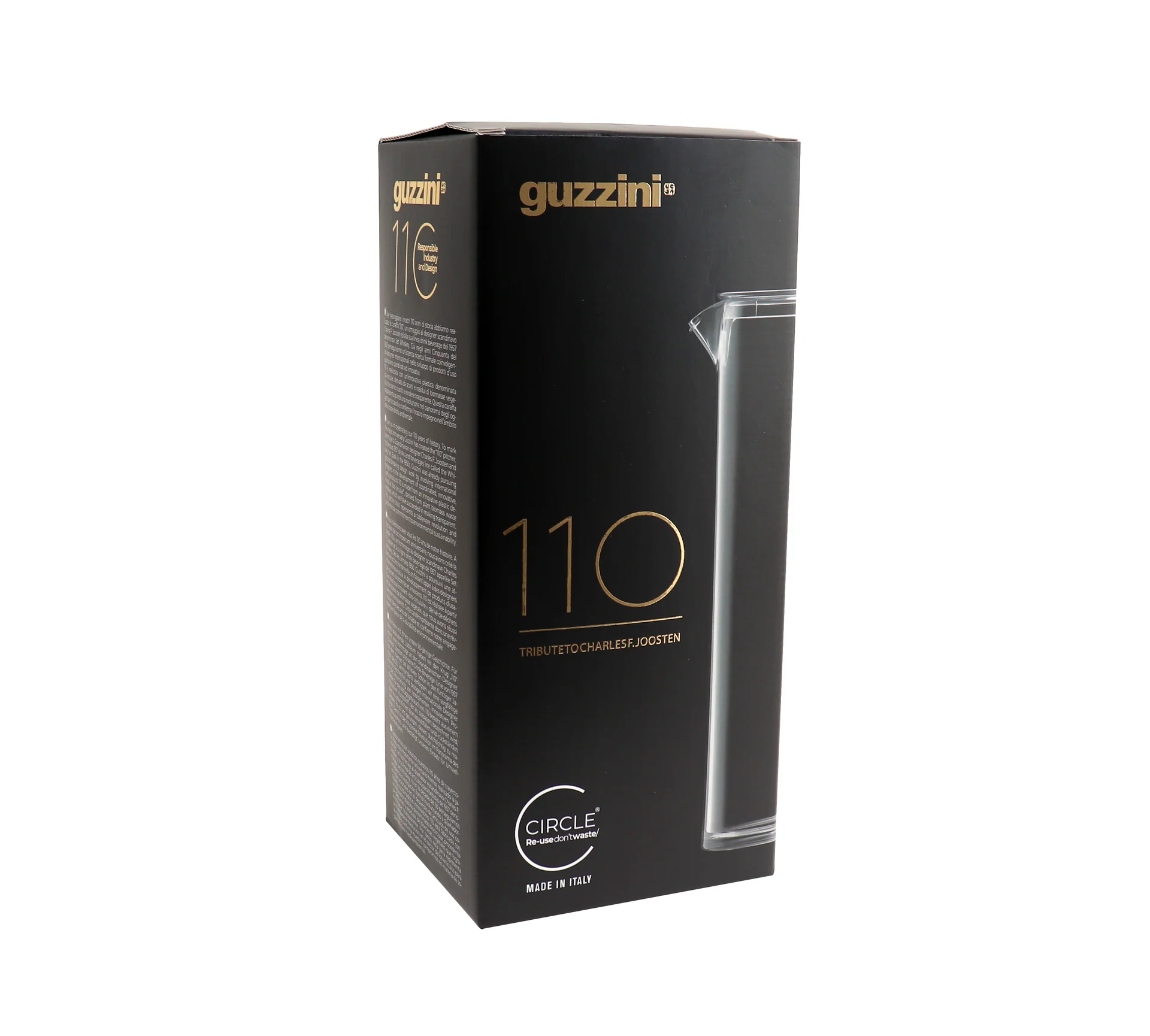Per i 110 anni di storia (1912-2022), Guzzini ha creato la caraffa “110”, un omaggio al designer Charles F. Joosten e alla sua linea drink beverage del 1957 denominata Set Whiskey.