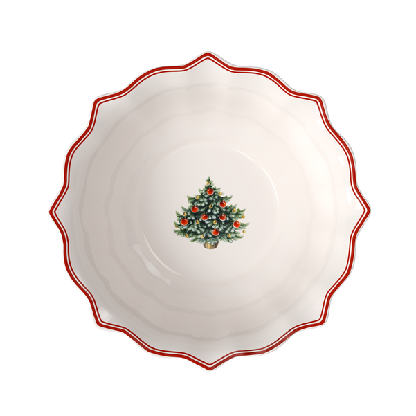 Questa graziosa insalatiera in porcellana Premium è finemente decorata con delicati motivi di giocattoli e aggiunge un tocco raffinato alla tavola natalizia.